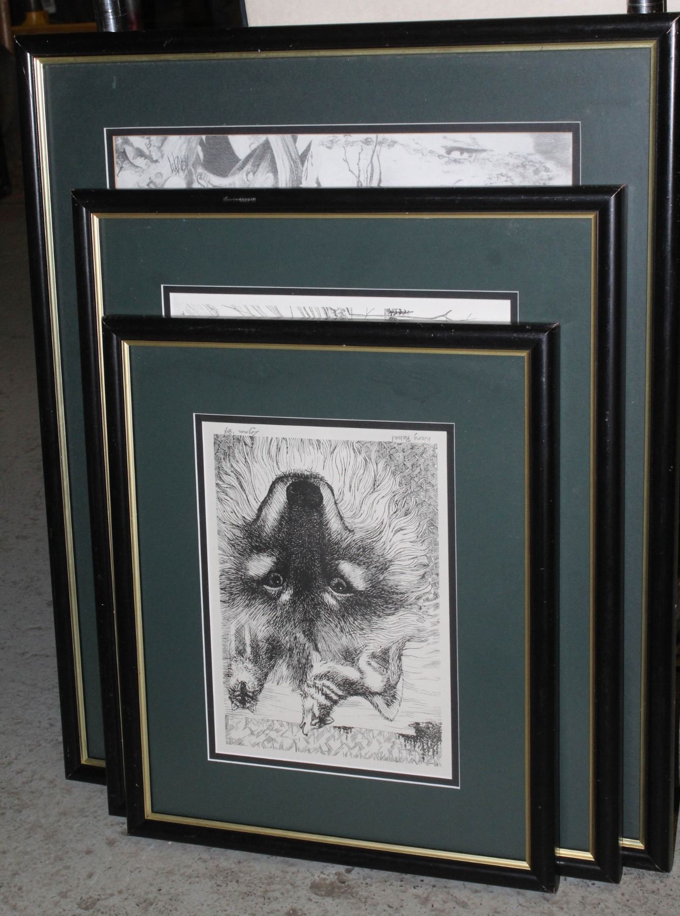 SET OF 3 WILDLIFE FRAMED SKETCH PRINTS