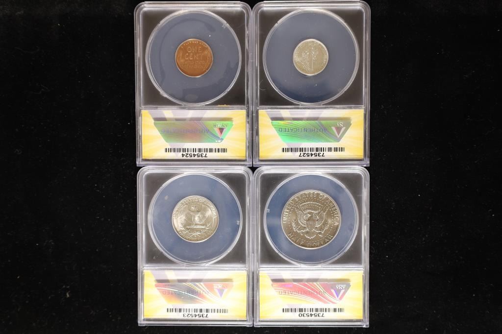 CENT MS66 RED, 1944 SILVER MERCURY DIME MS63, 1954-D WASHINGTON SILVER QUARTER MS64 AND 1974-D KENNEDY HALF DOLLAR MS63