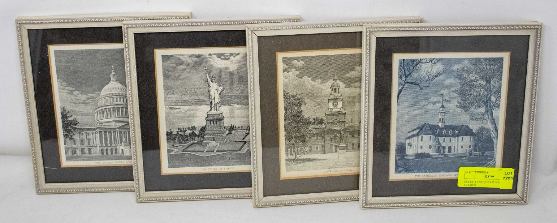 SET OF 4 ANTIQUE LITHOGRAPHS FRAMED