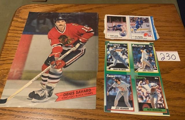 SET OF 4 BASEBALL CARDS AND ASSORTED HOCKEY