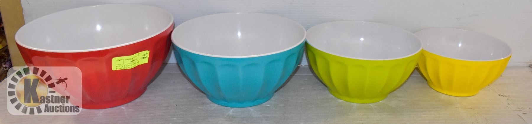 SET OF 4 COLOURFUL MIXING BOWLS FROM SMALL TO XL