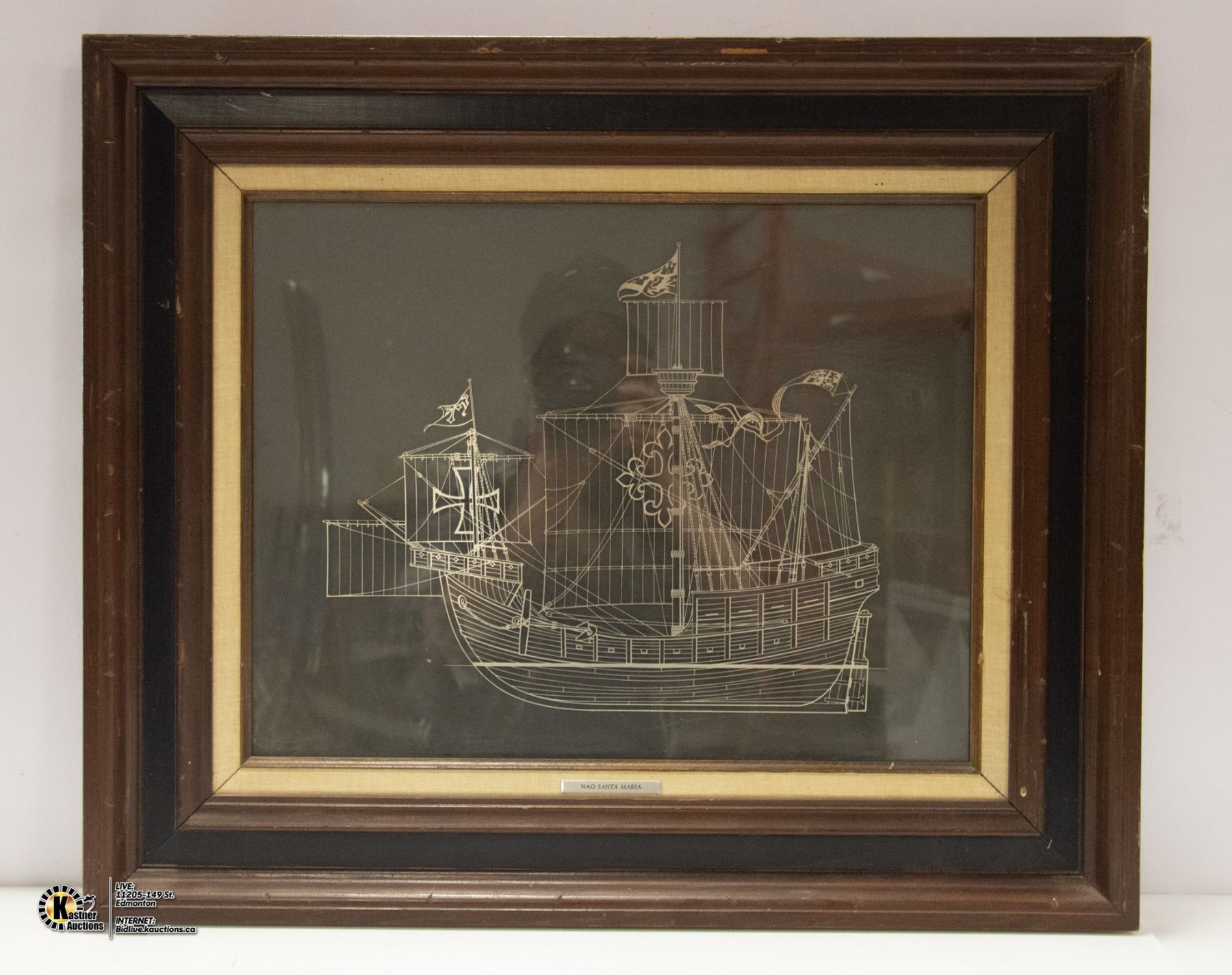 SET OF 4 FRAMED SHIP METALLIC ART - EACH 21" X 25"