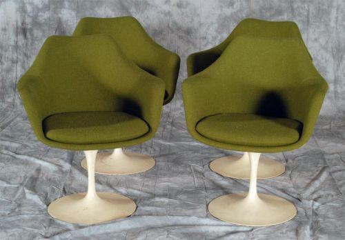 SET OF 4 KNOLL SWIVEL CHAIRS, designed by Saarinen, 32" high, condition: fabric lightly worn, bases dirty with minor paint chips, SHIPPING: See recommended third party shippers. This item can't be packed or shipped by seller.