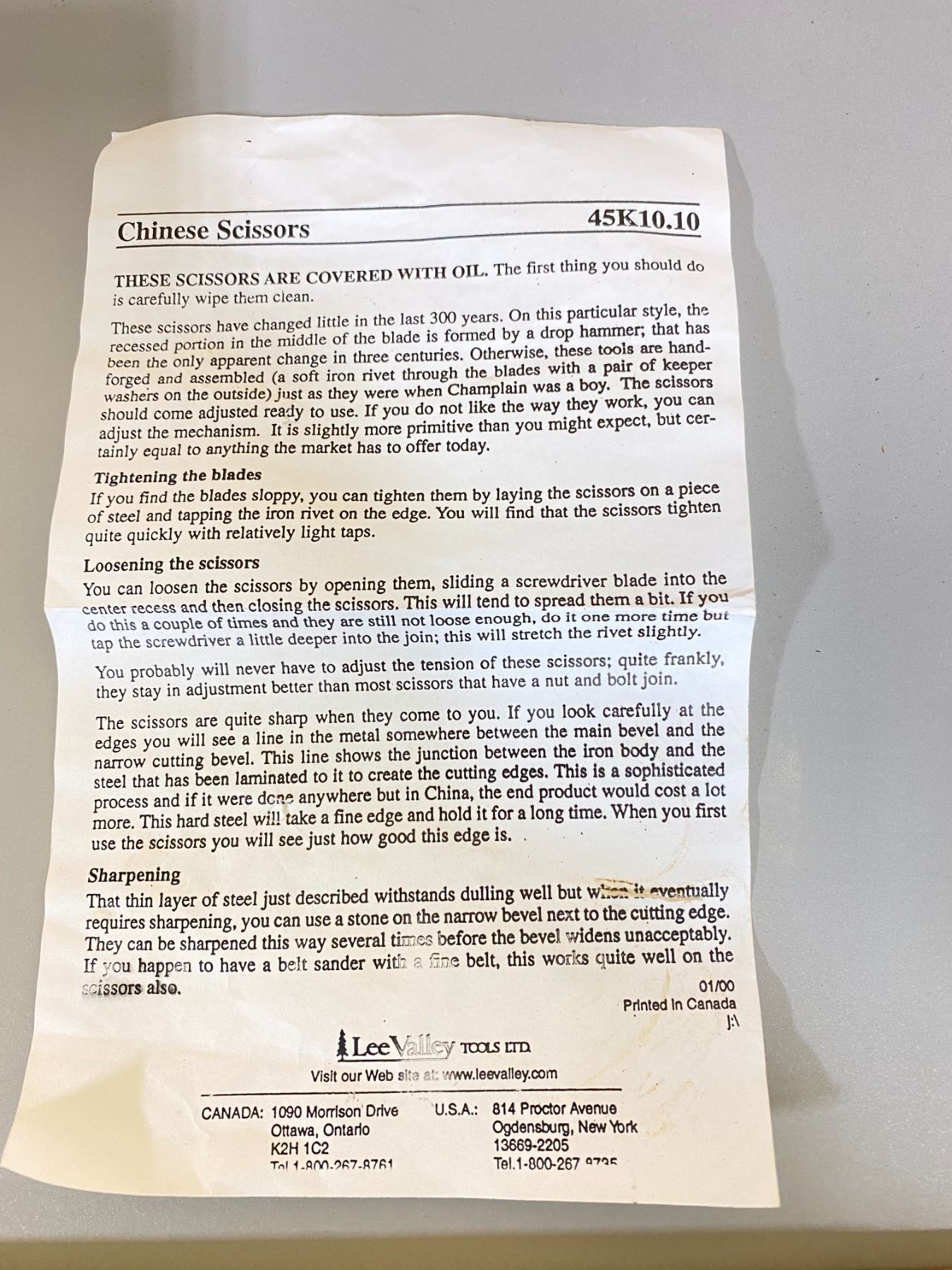 SET OF 4 LEE VALLEY CHINESE SCISSORS