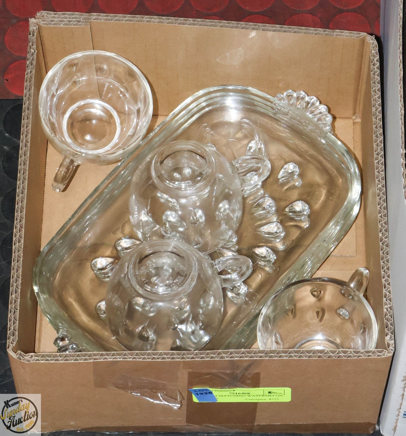 CLEAR GLASS DESSERT PLATE + TEA CUPS SET **ALL ITEMS MUST BE REMOVED BY 5PM SATURDAY, JUNE 28th 2025. ALL REMAINING ITEMS WILL BE SUBJECT TO A $6.00 PER DAY STORAGE CHARGE. ANY ITEMS REMAINING AFTER MONDAY, JULY 14TH 2025 WILL BE CONSIDERED FORFEITED. NO REFUNDS WILL BE ISSUED FOR FORFEITED ITEMS. TO SCHEDULE A PICK UP APPOINTMENT CLICK HERE
