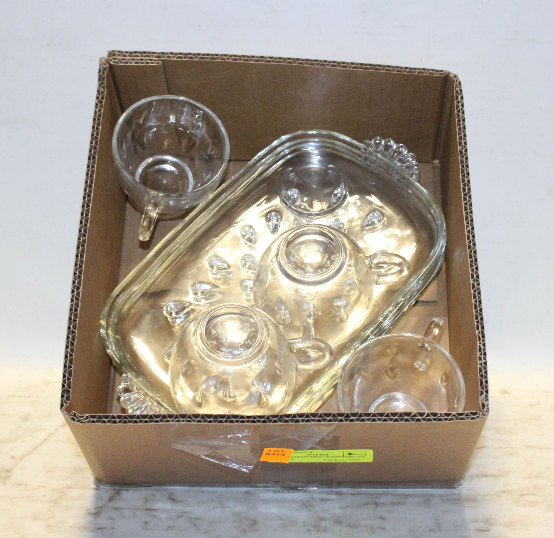 CLEAR GLASS DESSERT PLATE + TEA CUPS SET