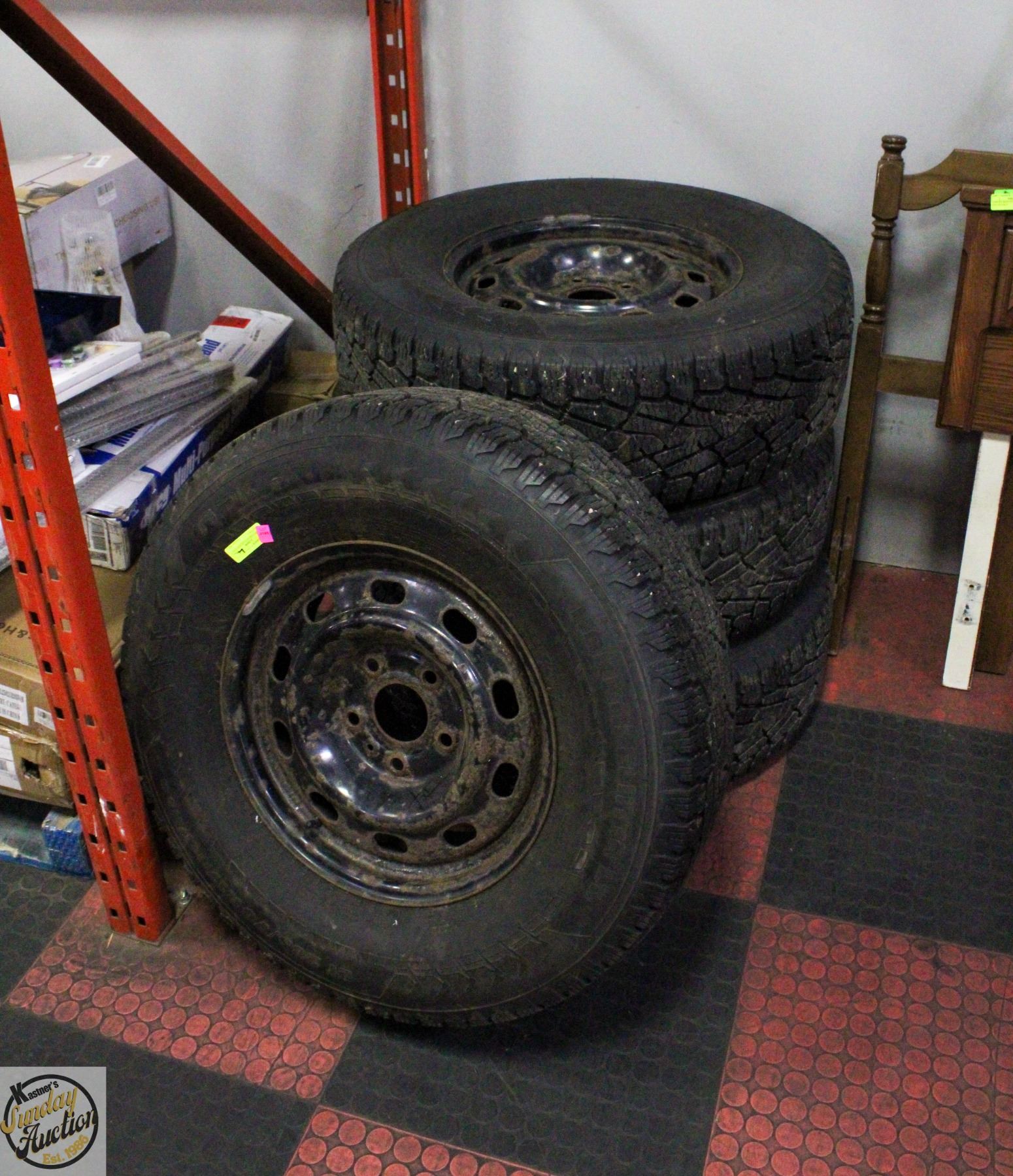 WINTER TIRES ON 17" - 5-BOLT DODGE RIMS WITH DODGE AIR SENSORS - FITS 2005 TO PRESENT 5-BOLT TRUCK PATTERN, TIRE SIZE MATCHES UP TO 20" DODGE SUMMER TIRES, APPROX 70%-75% TREAD REMAINING ON ALL 4 TIRES **ALL ITEMS MUST BE REMOVED BY 5PM SATURDAY, NOVEMBER 1ST 2025. ALL REMAINING ITEMS WILL BE SUBJECT TO A $6.00 PER DAY STORAGE CHARGE. ANY ITEMS REMAINING AFTER MONDAY, NOVEMBER 17TH 2025 WILL BE CONSIDERED FORFEITED. NO REFUNDS WILL BE ISSUED FOR FORFEITED ITEMS. TO SCHEDULE A PICK UP APPOINTMENT CLICK HERE