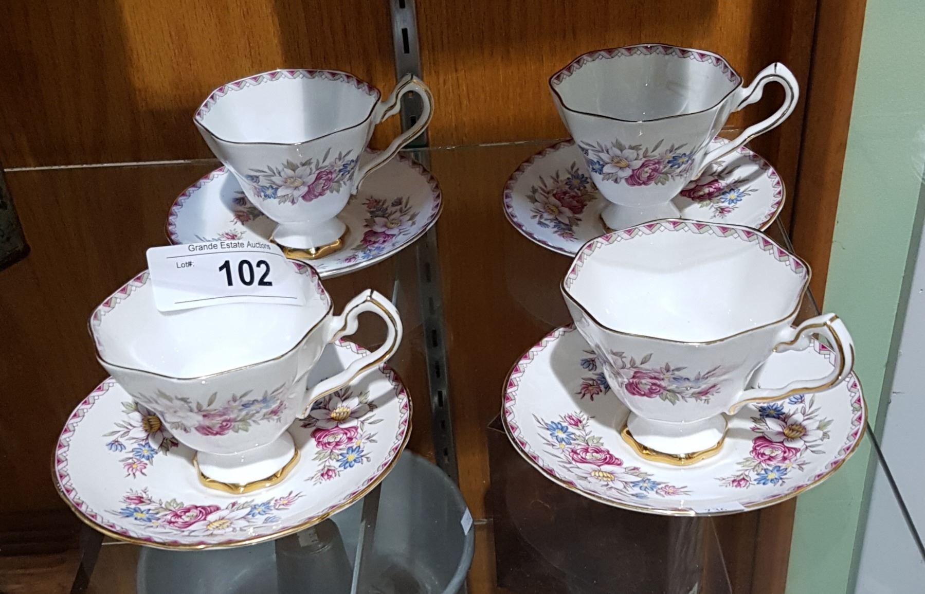 SET OF 4 ROYAL STAFFORD "WINDERMERE" BONE CHINA TEACUPS & SAUCERS