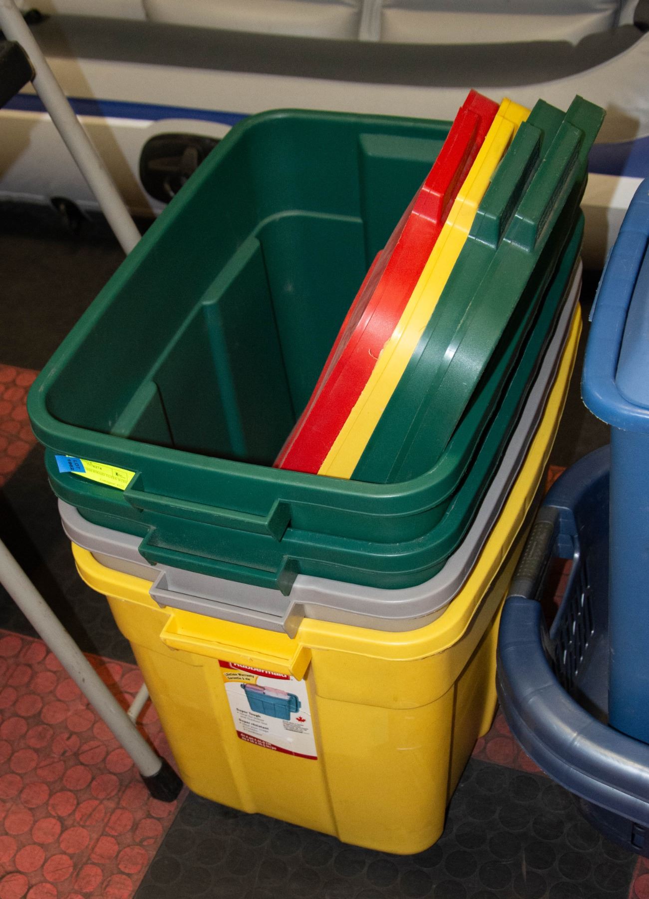 SET OF 4 RUBBERMAID TOTES WITH LIDS