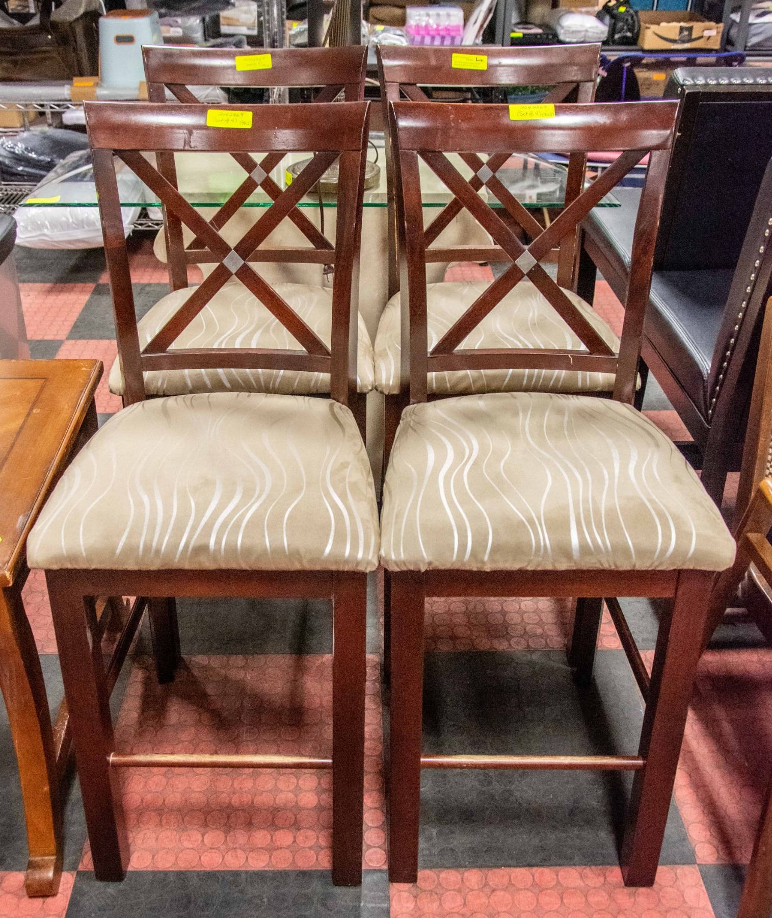 STAINLESS STEEL ACCENTS & PADDED SEATS (18"L X 18"W X 43"H) - (FLOOR TO SEAT HEIGHT 26") **ALL ITEMS MUST BE REMOVED BY 5PM MONDAY, NOVEMBER 7TH, 2022. ALL REMAINING ITEMS WILL BE SUBJECT TO A $6.00 PER DAY STORAGE CHARGE. ANY ITEMS REMAINING AFTER MONDAY, NOVEMBER 28, 2022 WILL BE CONSIDERED FORFEITED. NO REFUNDS WILL BE ISSUED FOR FORFEITED ITEMS. TO SCHEDULE A PICK UP APPOINTMENT CLICK HERE