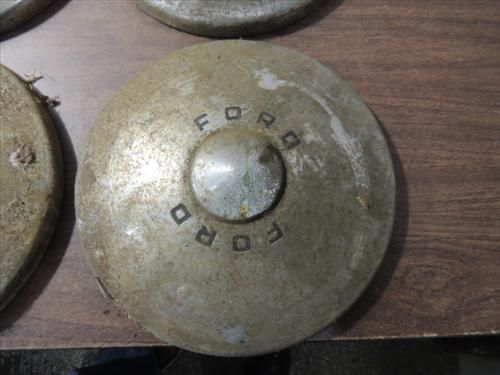 SET OF 4 VINTAGE 1949-50 FORD HUBCAPS. AS SHOWN. VIEW PICTURE FOR DETAIL.