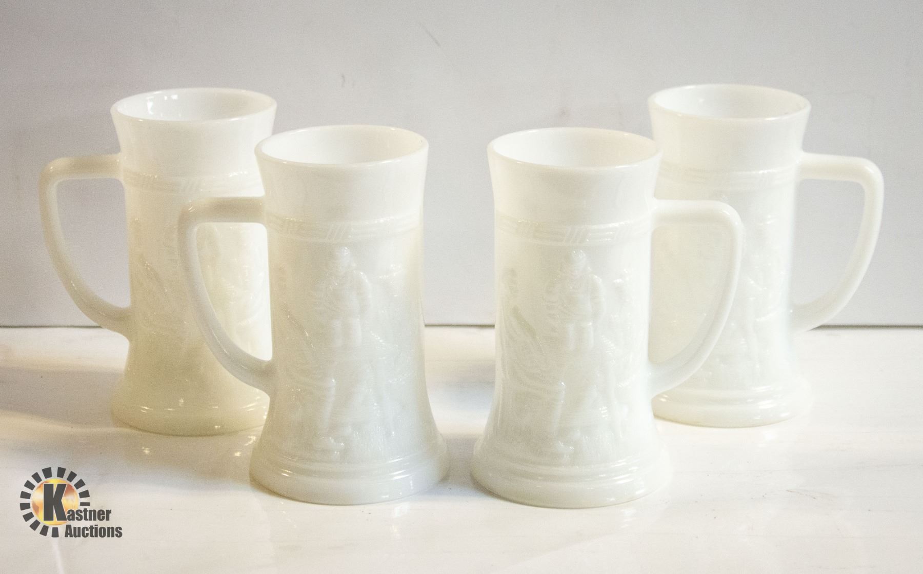 SET OF 4 VINTAGE MILK GLASS BEER STEINS