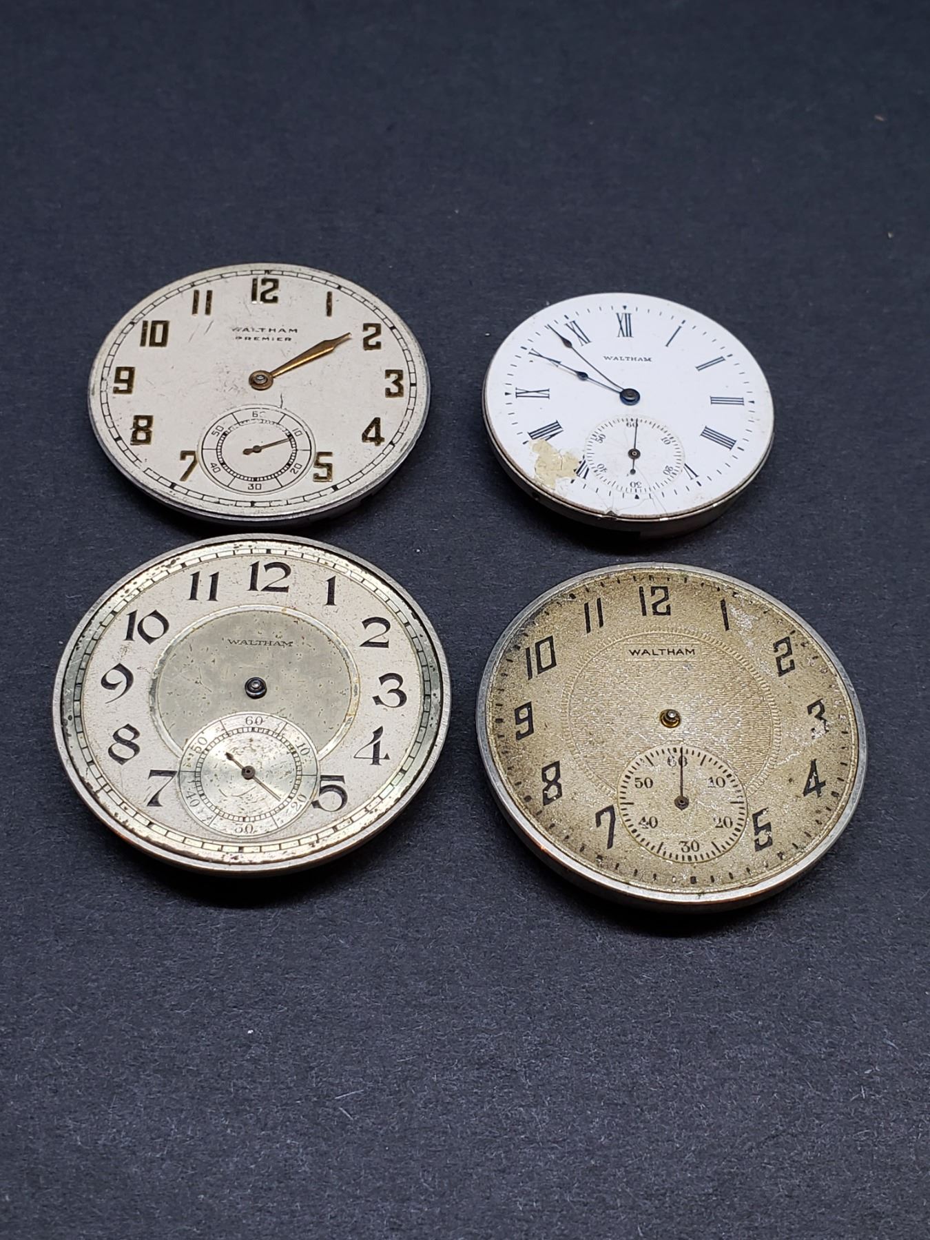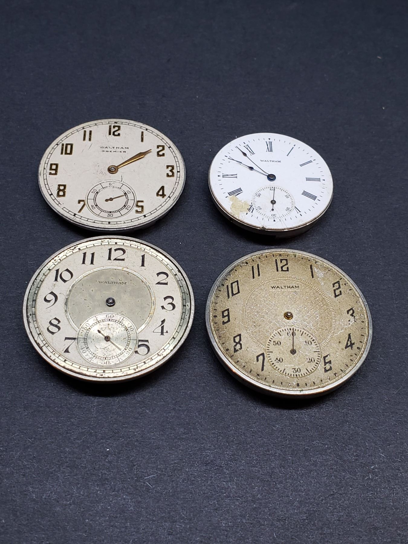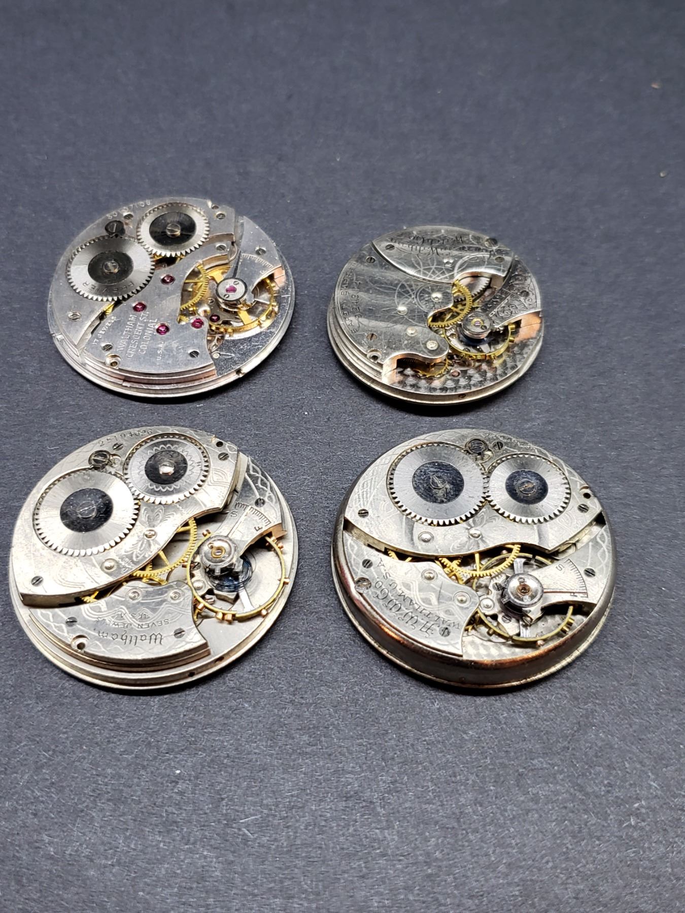 Set of 4 Waltham Watches Pieces are approx 1 1/2" to 1 1/4" All items Located in in Hollywood Florida Warehouse For Shipping Call today for quote they have item numbers and Pak Mail is available for all your custom packaging and shipping needs. We can package, palletize, crate, insure and ship to any Domestic or International location. All packaging and shipping fees must be paid in full before shipment is released. On international shipments, consignee is responsible for all Duties, Taxes, Customs Clearance or any destination fees that apply. Please visit our website @ www.pakmail.com/us770 for contact information or to get a quote. (Let us know you are a winning bidder from the Puckett auction so we can correctly arrange pick up for your item