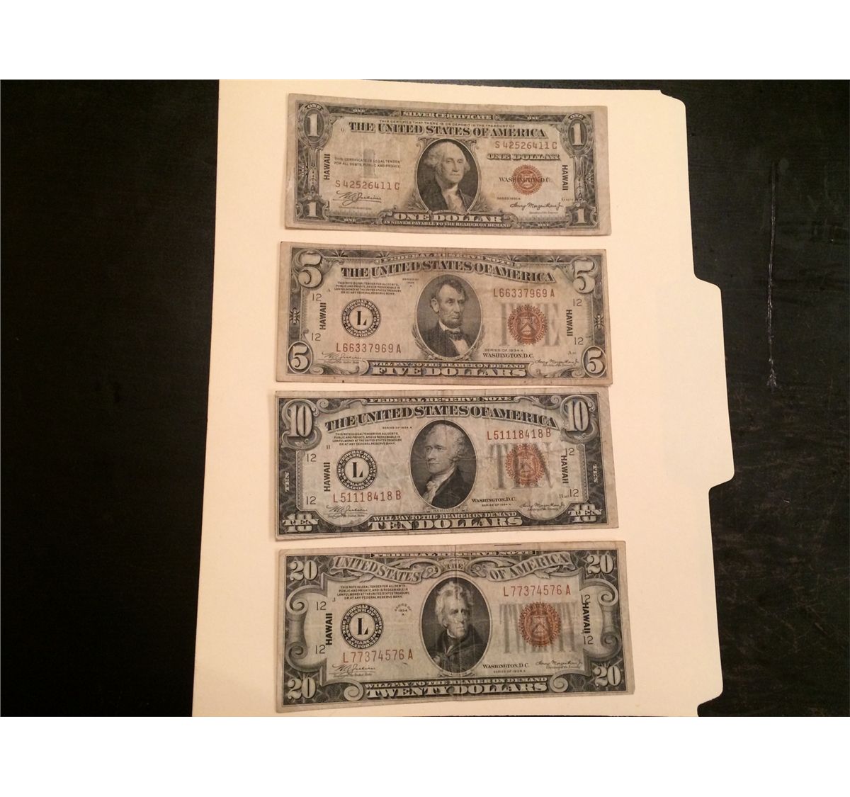 SET OF 4 WWII HAWAII SERIES 1934-A NOTES-$1, $5, $10 AND $20