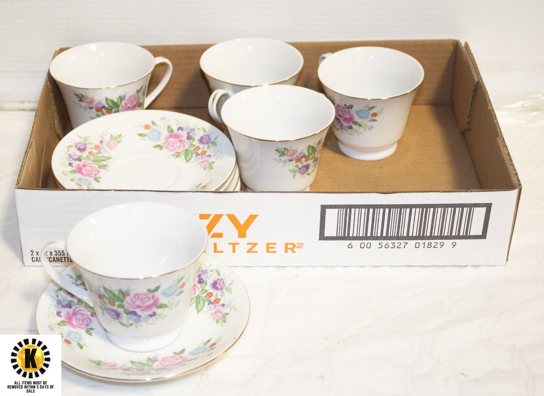 SET OF 5 CHINESE CUPS AND SAUCERS