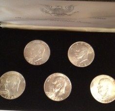 SET OF 5 MINT SILVER EISENHOWER DOLLARS, 1971-1974