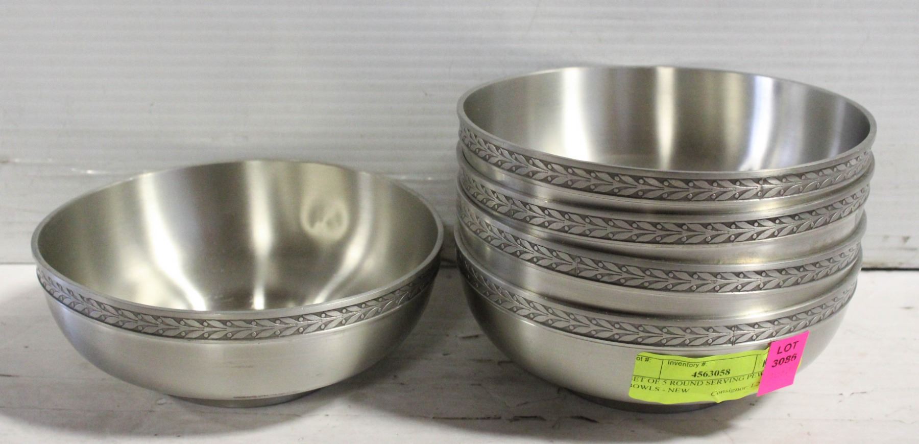 SET OF 5 ROUND SERVING PEWTER BOWLS - NEW