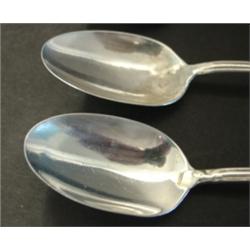 SET OF 5 STERLING TEA SPOONS. Marked on reverse of handle "Sterling" with hallmarks. Front sides of handles are faintly monogrammed.