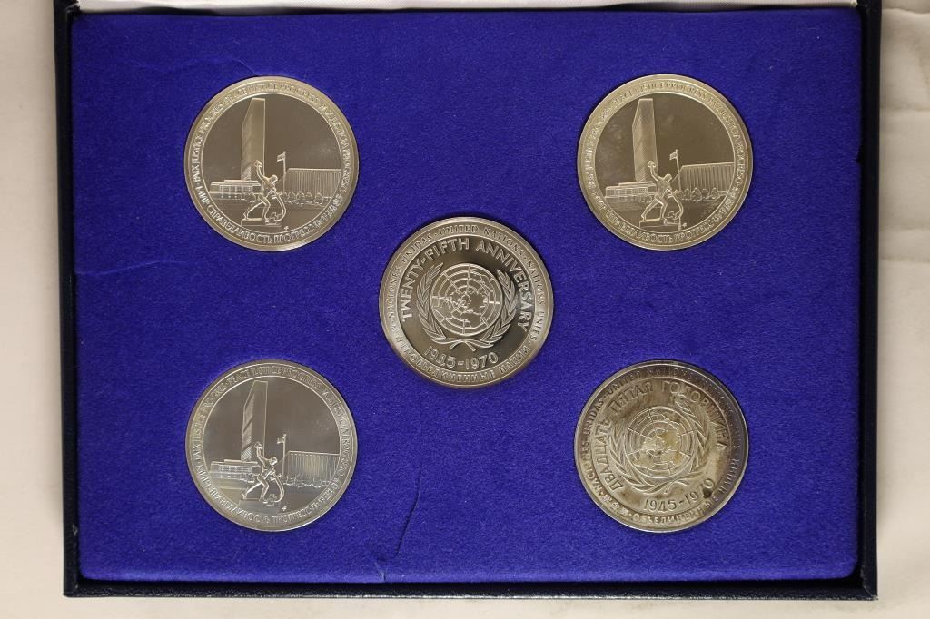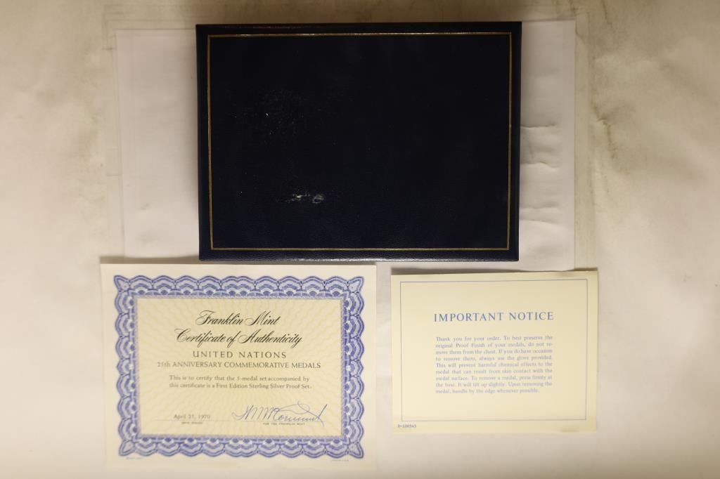 EDITION COMMEMORATIVE MEDALS, EACH MEDAL IS 26.4 GRAMS OF PROOF STERLING SILVER, JUST ABOUT 6 OUNCES OF STERLING SILVER. IN BLUE FLIP CASE AND CERTIFICATE FROM THE FRANKLIN MINT
