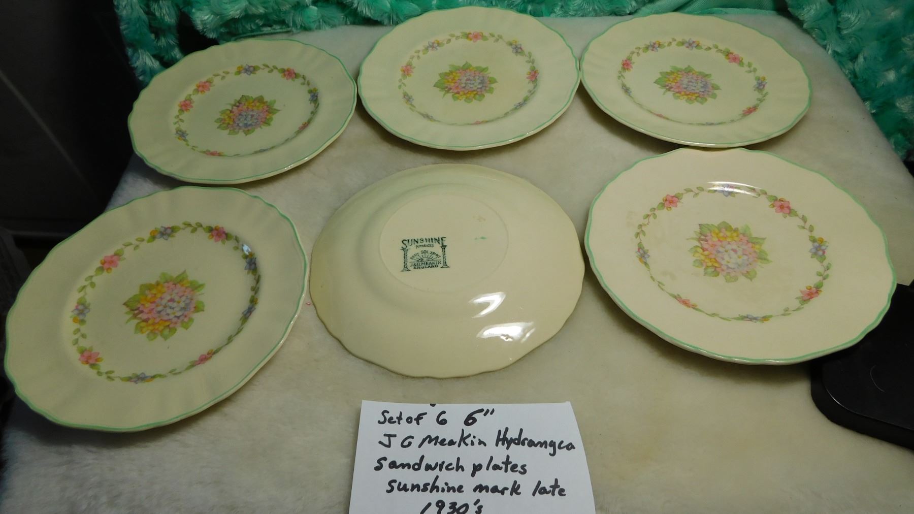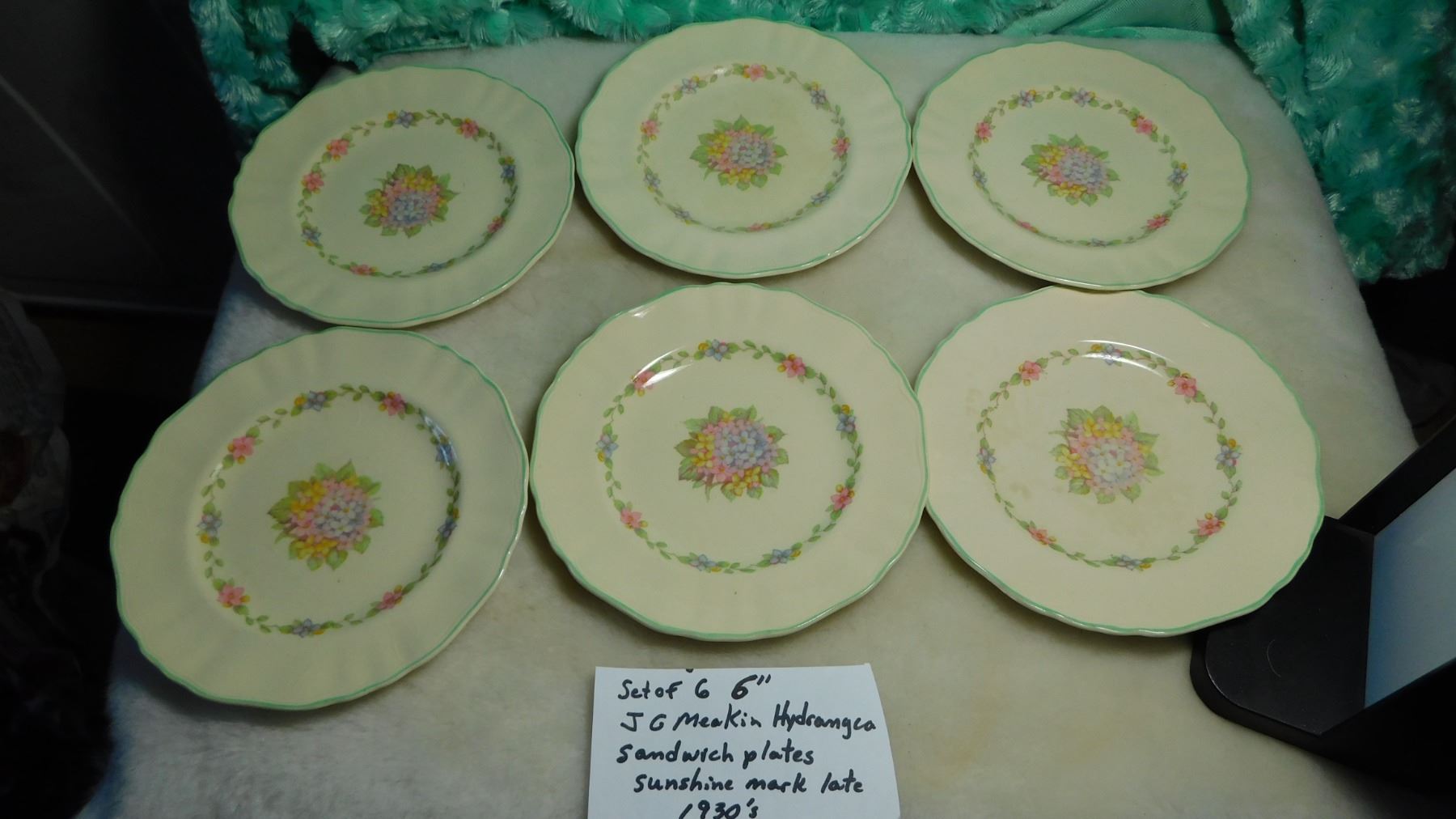 SET OF 6-6”, J. G. MEAKIN HYDRANGEA, SANDWICH PLATES, 1930’S
