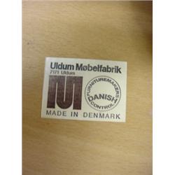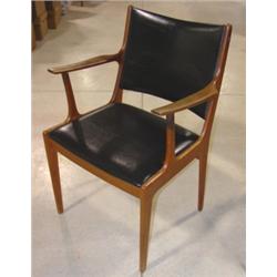 Set of 6 Danish Contemporary art dining chairs (4 side chairs and 2 arm chairs). Marked on bottom of seat with Danish label. 32" H, 20.75" W, 18" H to top of seat.