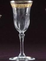Italian lead crystal - Venetian hand painted silver & amber artwork - Measures: 9" H - Capacity: 5 ounces
