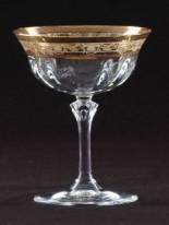 Italian lead crystal - Venetian hand painted 14 kt. gold & amber artwork - Measures: 7.5" H - Capacity: 6 ounces