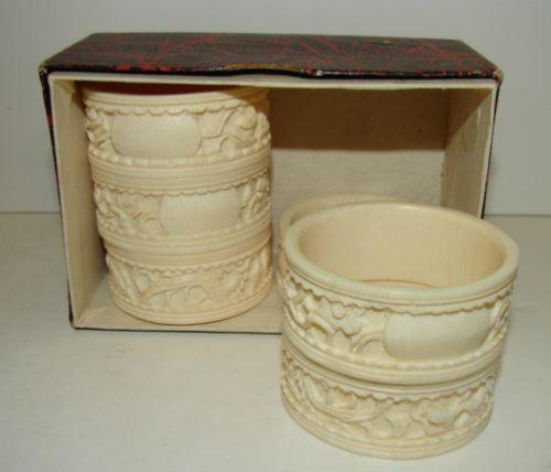 SET OF 6 IVORY NAPKIN RINGS. Ornately carved with oriental dragon design.
