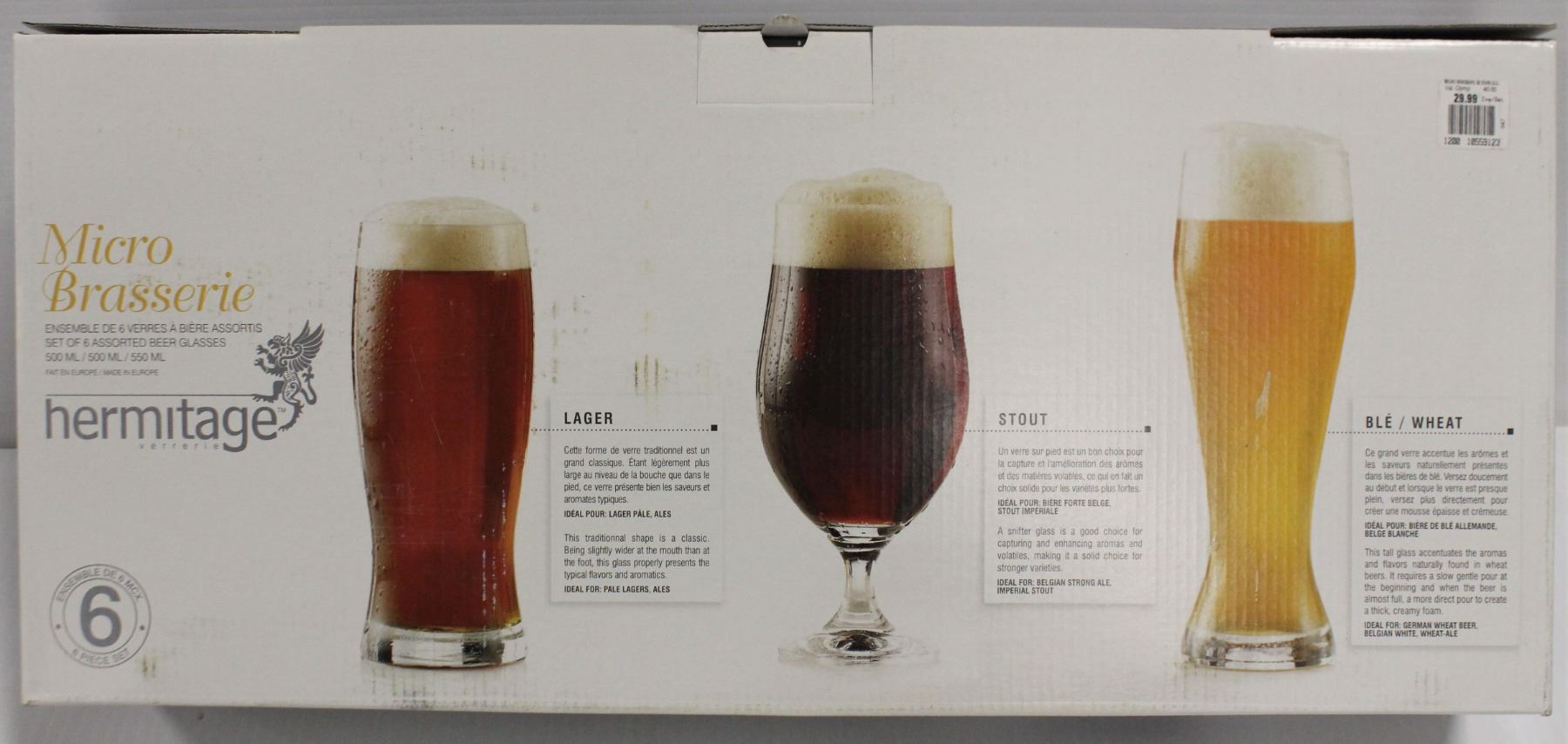 MADE IN EUROPE, MICRO BRASSERIE BY HOUSE OF KRONO GLASS MAKERS EST.1923 TWO LAGER 500ML, TWO STOUT 550ML, TWO WHEAT / BLE 550ML.