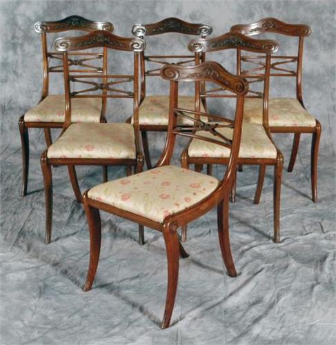 SET OF 6 REGENCY ROSEWOOD SIDE CHAIRS with carved backs, 35" high, circa 1810, condition: excellent- free of breaks, SHIPPING: See recommended third party shippers. This item can't be packed or shipped by seller.
