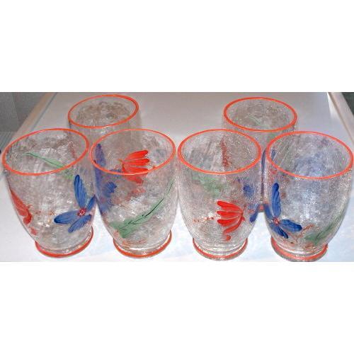 YOUR NEIGHBOR'S NOT GOING TO HAVE A SET LIKE THIS! VERY UNIQUE, VERY OLD SET OF 6 HAND-PAINTED CRACKLE GLASS ROCKS/JUICE TUMBLERS. THIS IS A MUST BUY.</em></td>