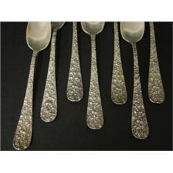 SET OF 7 STIEFF STERLING SILVER SPOONS WITH ELONGATED BOWLS. Marked on reverse of handle. 5.75" L