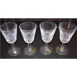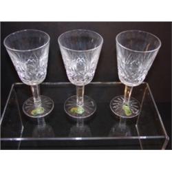 Set of 7 matching Waterford crystal stemmed goblets. All are marked with sticker and on base. 5.5" H