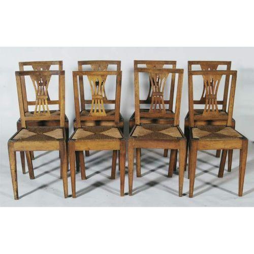SET OF 8 CONTINENTAL FRUITWOOD SIDE CHAIRS early 19th century CONDITION REPORT: excellent, rush seats replaced- no damage or restoration.