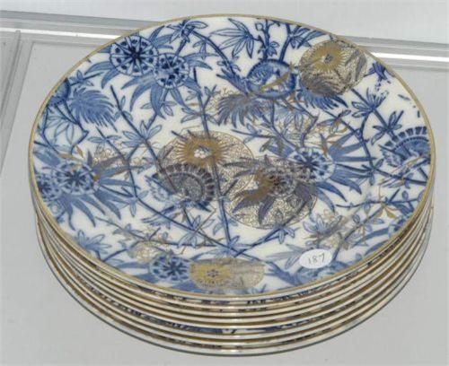 SET OF 8 DOULTON PLATES with Japanesque design, 9 1/2" diameter, late 19th century