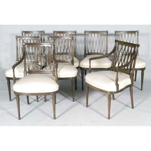 SET OF 8 GEORGE III STYLE DINING CHAIRS attributed to Schmieg & Kotzian these chairs have been with lot 91 for at least 50 years, finish faded and hazy