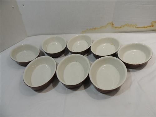 SET OF 8 HALL #573 CERAMIC CUSTARD BOWLS. AS SHOWN. VIEW PICTURE FOR DETAIL.
