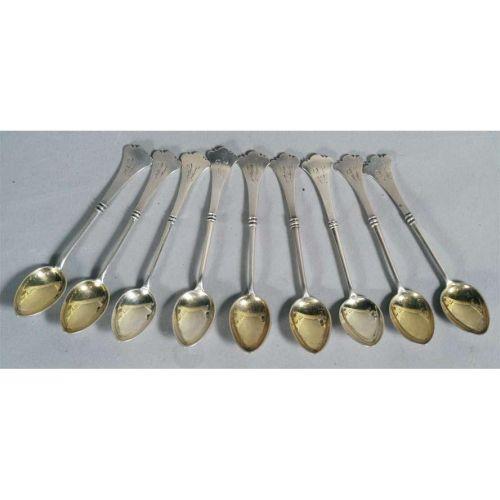 SET OF 9 RUSSIAN DEMITASSE SPOONS CONDITION REPORT: excellent. PACKING AND SHIPPING (excluding insurance) by Fairfield Auction to points within the Continental U.S.A. and Canada (all other international must be handled by 3rd party shipper) $20.
