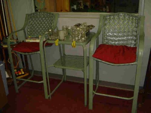 SET OF ALUMINUM GAME ROOM BAR STOOLS & TABLE