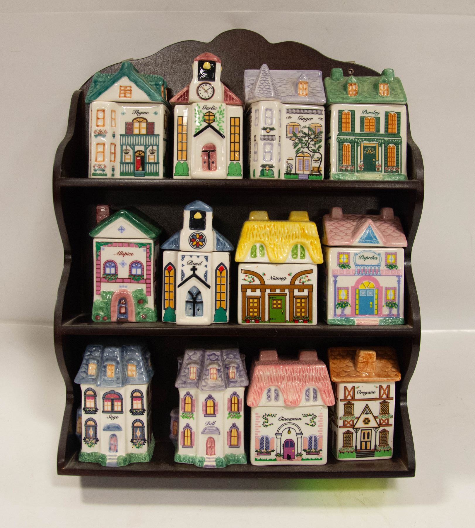 SET OF AVON SPICE CONTAINERS ON DISPLAY RACK