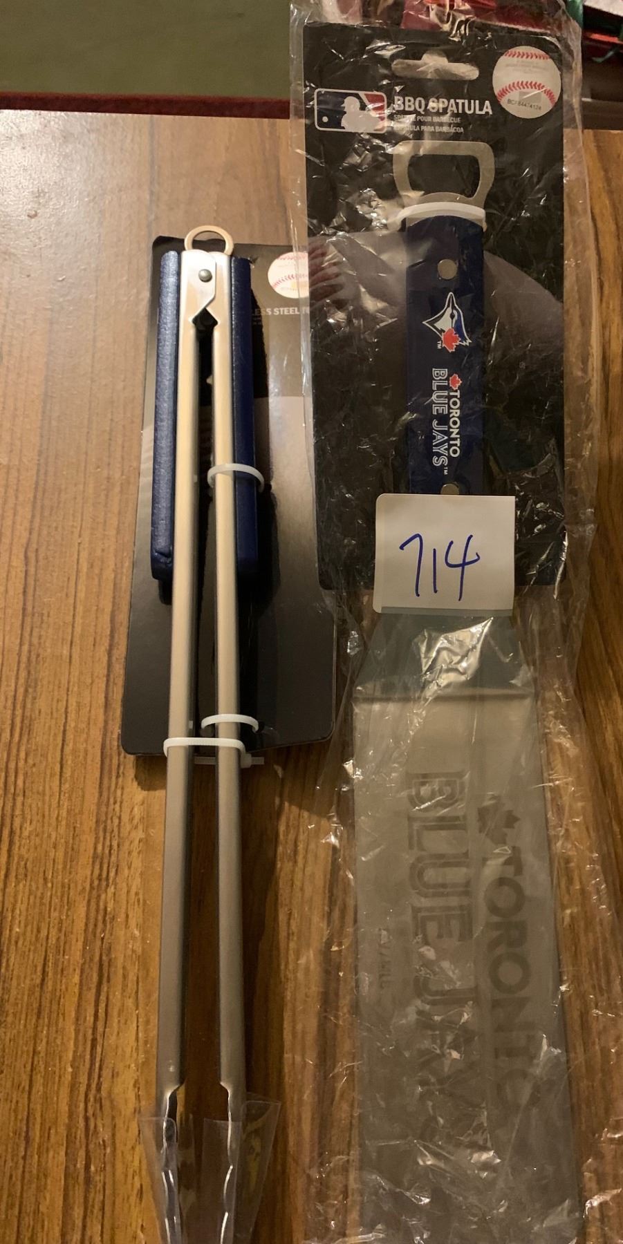 SET OF BLUE JAYS NEW BBQ TONGS AND SPATULA W BOTTLE OPENER