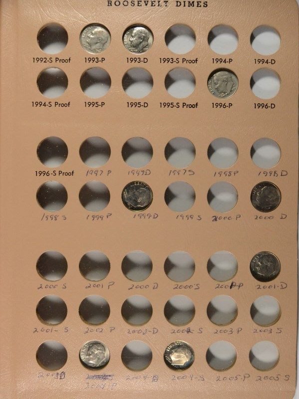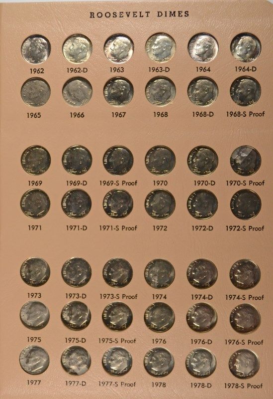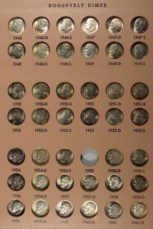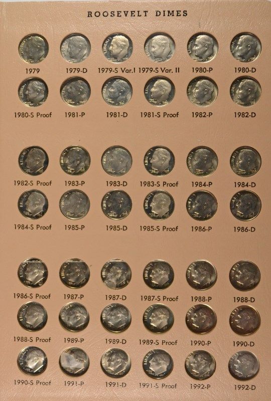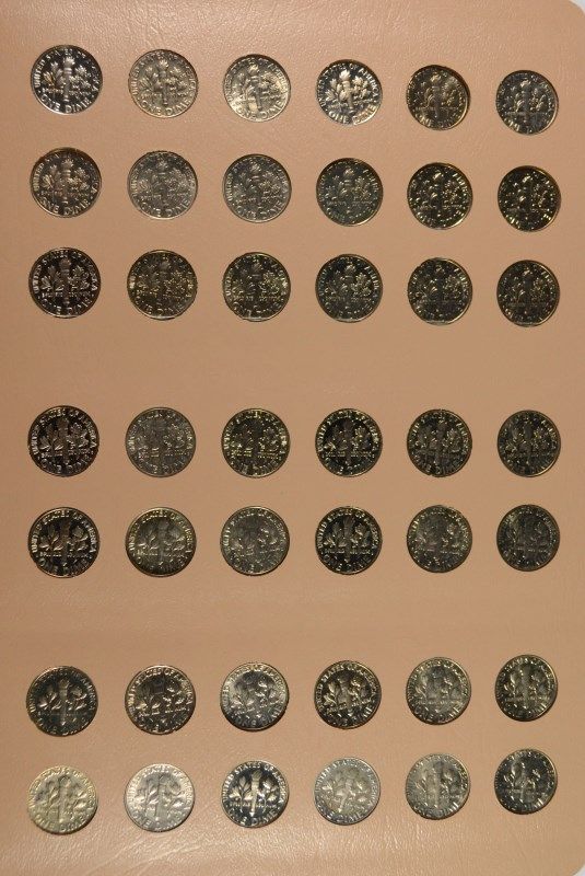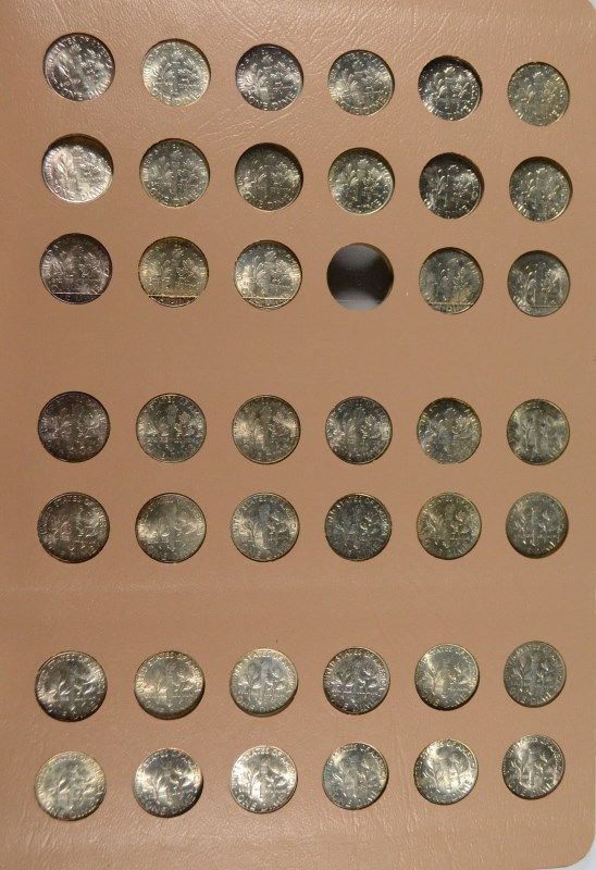 SET OF BU & PROOF ROOSEVELT DIMES: 1946-1999 MISSING 55-P IN DANSCO ALBUM, NICE