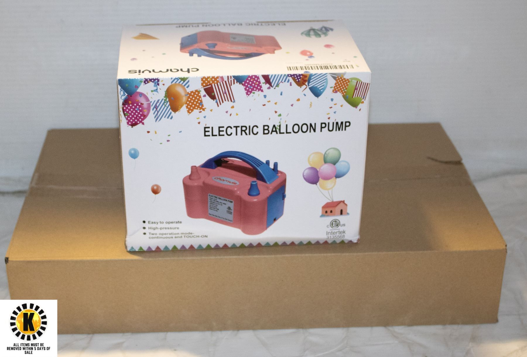 ELECTRIC BALLOON PUMP BALLOONS ARCH KIT PACKAGE INCLUDES 15 FOLDED GLASS FIBER POLE, 2 PVC BASE, 2 PVC LONG PIPE, 2 WATER(SAND) FILLABLE BAG, 1 MANUAL PUMP, 50 BALLOON CLIPS, 2 BALLOON KNOTTER, 2 GROUND SECURE ROPES, 4 GROUND NAILS. THE PORTABLE ELEC
