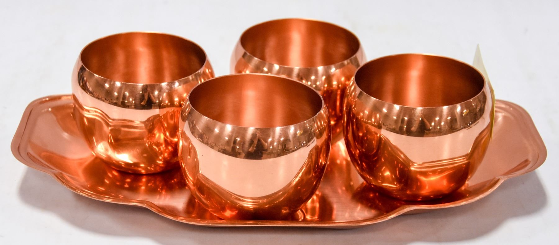 SET OF COPPER CRAFT CUPS AND TRAY
