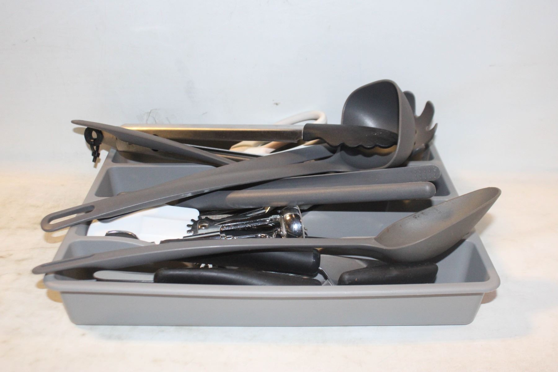 SET OF CUTLERY AND UTENSILS IN TRAY
