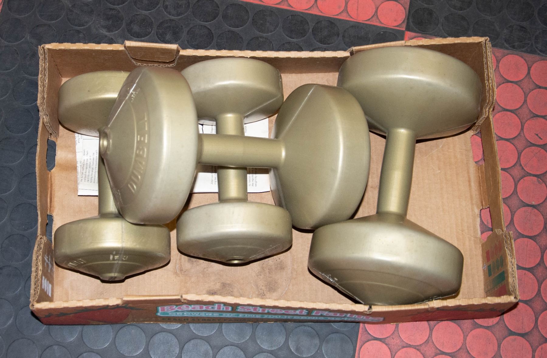 SET OF DUMB BELLS 2 5 LBS, 2 10 LBS WITH