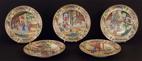 "SET OF FIVE MATCHING ROSE MEDALLION LOW BOWLS each 10 1/2"" diameter, excellent circa 1830 packing and shipping (excluding insurance) $50"