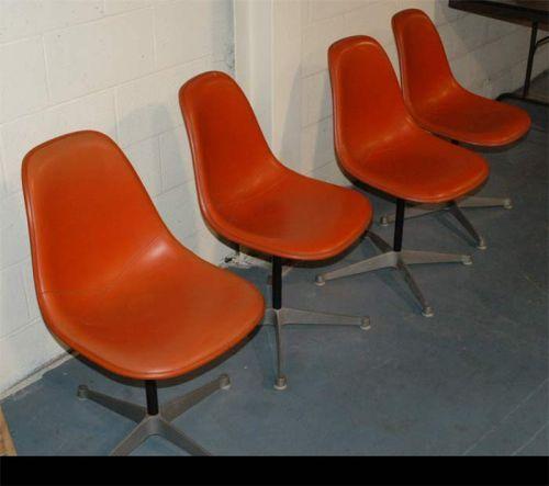 SET OF FOUR HERMAN MILLER SWIVEL CHAIRS with original orange upholstery,