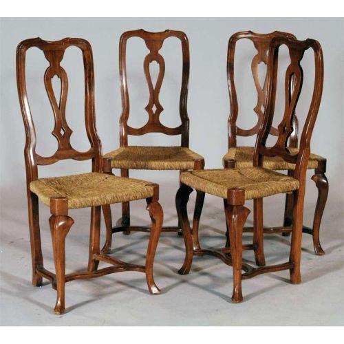 1 SET OF FOUR ITALIAN STYLE DINING CHAIRS with rush seats 20th century