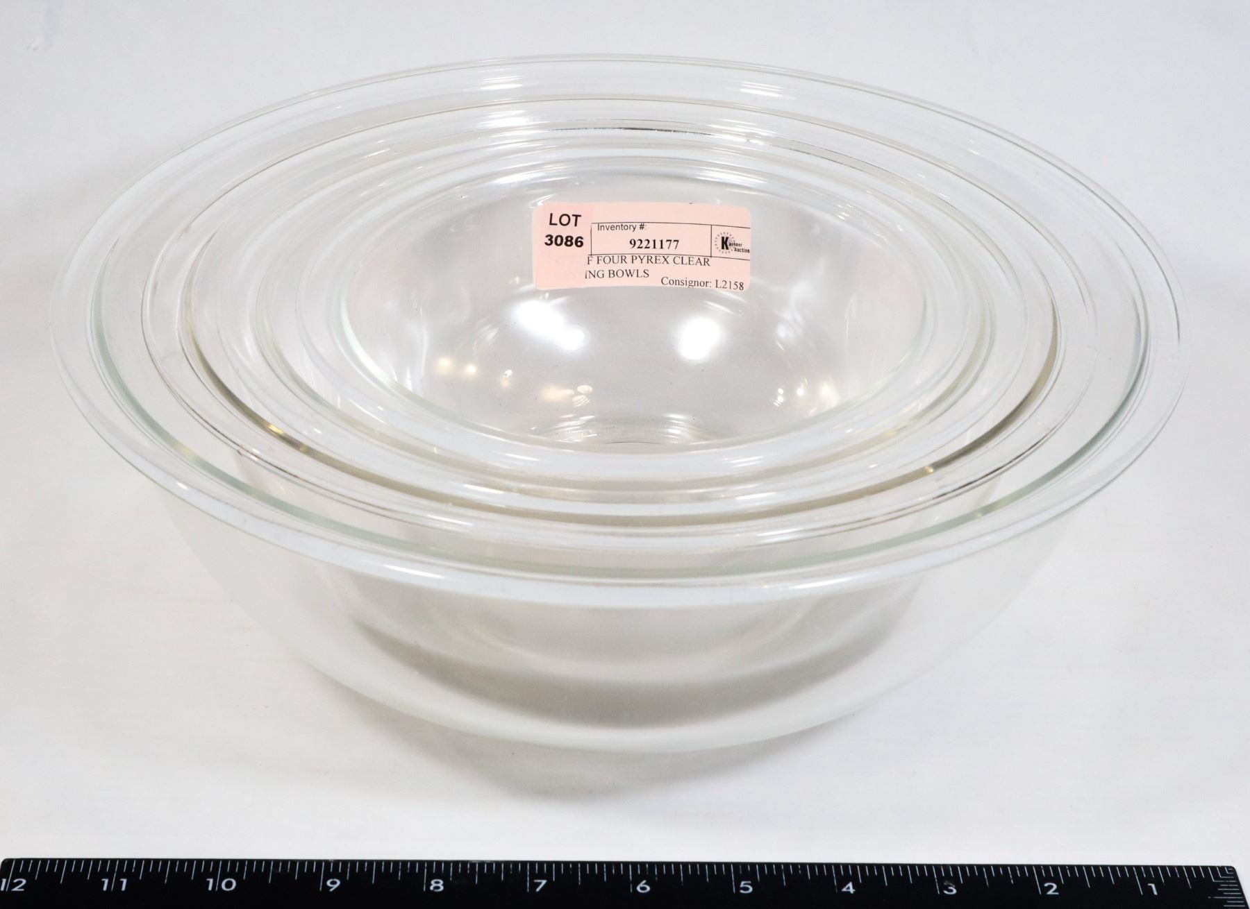 SET OF FOUR PYREX CLEAR NESTING BOWLS